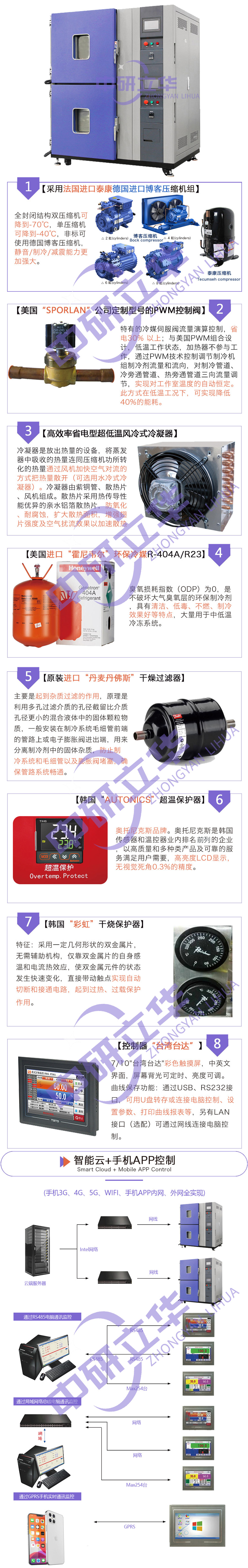 50人熟練工種,有10年以上試驗箱生產經驗;核心零配件全部進口,ISO9001質量體系,每道工序檢驗嚴格。