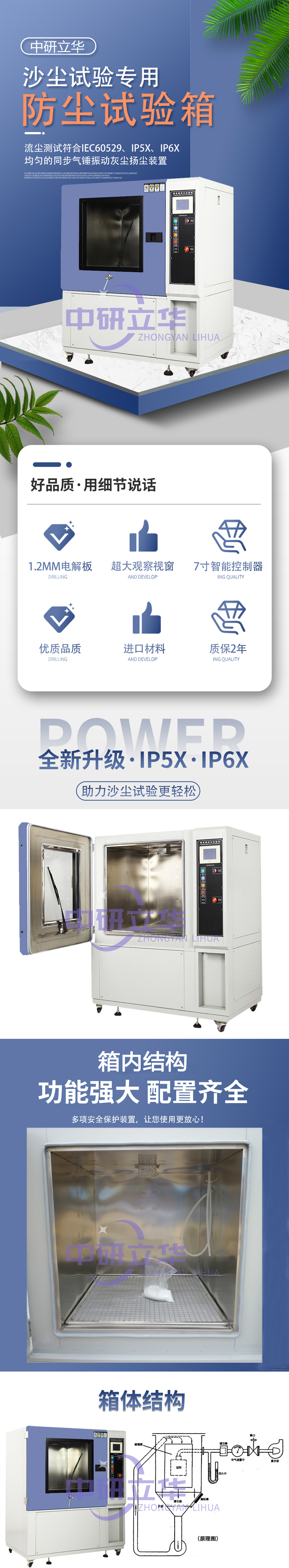 介紹:沙塵試驗箱學名為“砂塵試驗箱”,模擬自然界風沙氣候對產(chǎn)品的破壞性,適用于檢測產(chǎn)品的外殼密封性能,主要用于外殼防護等級標準中規(guī)定的IP5X和IP6X兩個等級的試驗。
