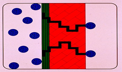 滲透作用。取決于兩側分子濃度的高低(肉眼看不見的程度)所有的材料都具有滲透性
