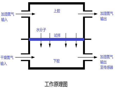 ■ 濕度差:上腔的水分子透過試樣  擴散到下腔