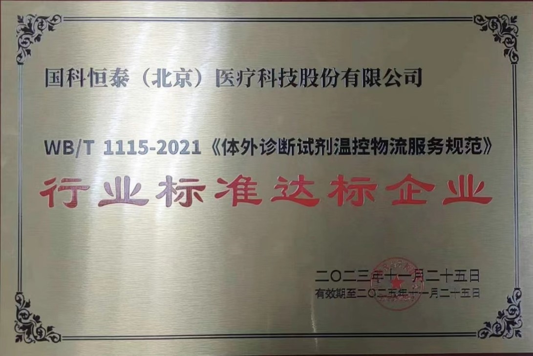 針對體外診斷試劑溫控物流服務的市場需求,國科恒泰不斷提升相關市場的服務質量,在本次評選中成功從《體外診斷試劑溫控物流服務規范》的試點企業,升級為達標企業。該升級標志著國科恒泰的醫療器械供應鏈服務質量獲得業內權威機構的認可,已具備行業領先的規范化、標準化的體外診斷試劑溫控物流服務水平。
