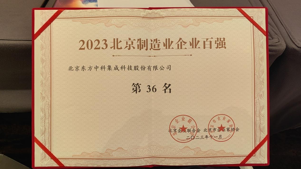 東方科儀控股成員企業東方中科入圍“2023京津冀制造業企業百強”榜單
