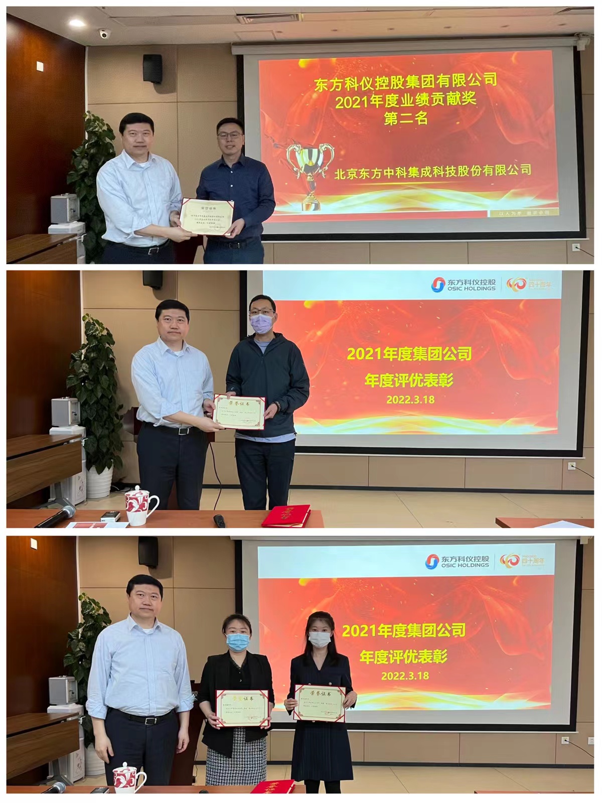 會議公布了2021年度成員企業業績貢獻獎、創新發展獎及2021年度集團公司最佳服務個人獎、最佳管理團隊獎評選結果。東方科學儀器上海進出口有限公司榮獲業績貢獻獎第一名,北京東方中科集成科技股份有限公司榮獲業績貢獻獎第二名。集團人力資源部徐鳴鴻、集團辦公室栗麗敏獲得最佳服務個人獎,集團信息技術部獲得最佳管理團隊獎。