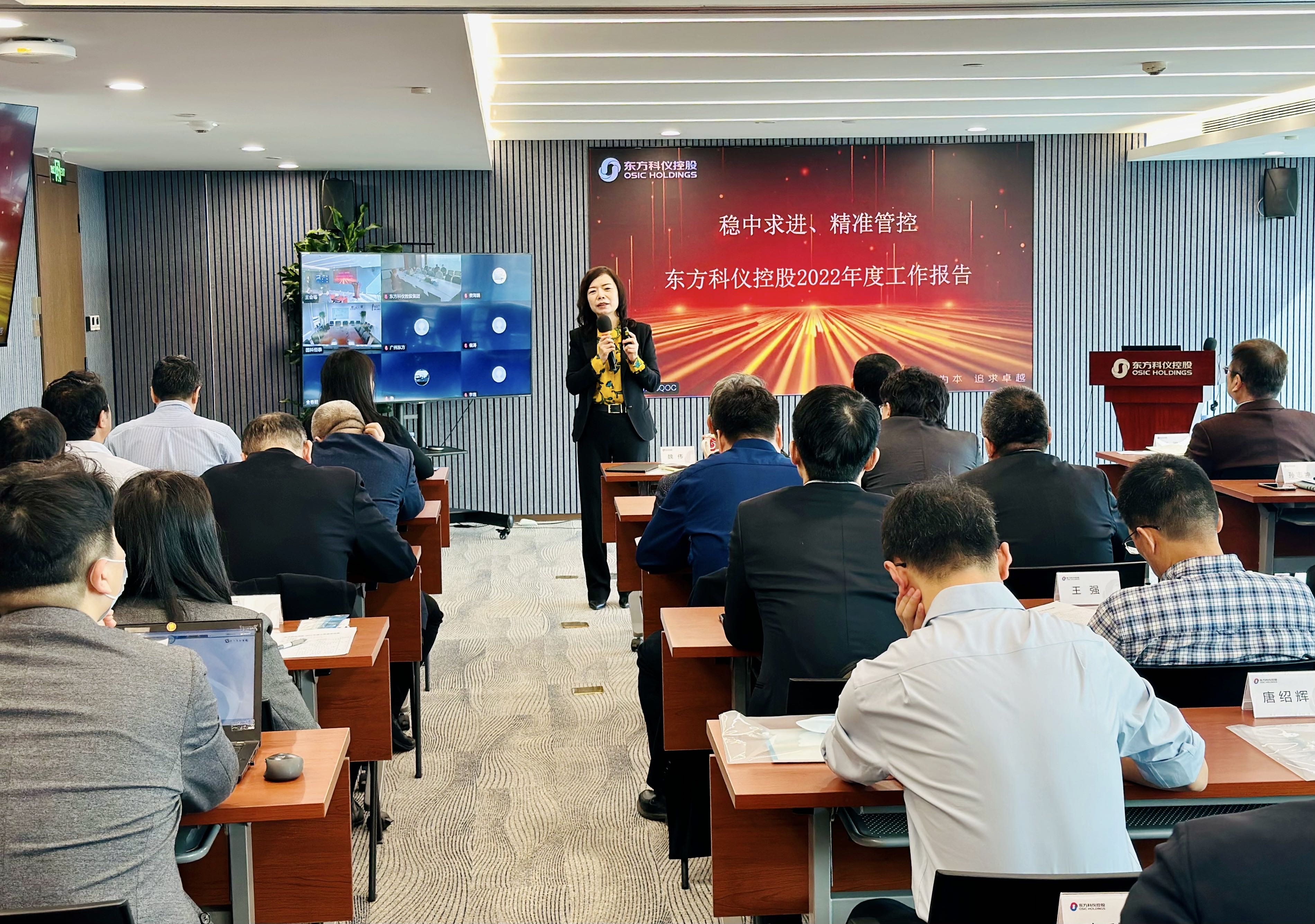 總裁魏偉作了題為“穩中求進、精準管控”的工作報告,對集團公司及各成員企業2022年經營情況、重點工作完成情況進行了全面梳理總結,提出集團現階段工作中存在的主要問題,并對2023年重點工作進行了部署。她指出,2022年是黨和國家歷史上極為重要的一年,面對反復延宕的新冠肺炎疫情和國內外復雜多變的經營環境,東方科儀控股始終牢記作為“國家隊”“國家人”,必須心系“國家事”、肩扛“國家責”的使命擔當,在統籌做好疫情防控和企業發展的基礎上進一步聚焦主責主業。2022年,在全體員工的共同努力下,營業收入和資產總額再創歷史新高。