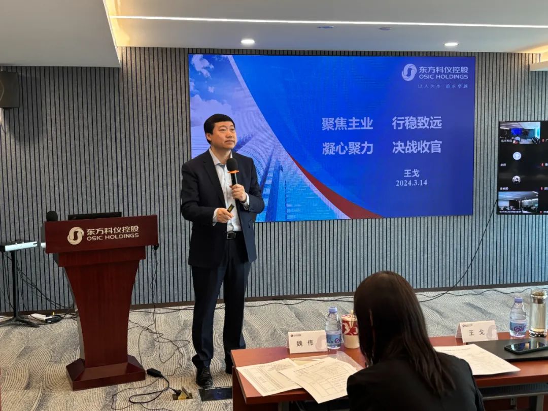 3月14日至15日,東方科儀控股集團(tuán)有限公司(以下簡稱“東方科儀控股”)召開2024年度工作會議。集團(tuán)公司中層及以上領(lǐng)導(dǎo)人員和各成員企業(yè)經(jīng)營班子成員60余人通過現(xiàn)場主會場與視頻分會場的方式參加了本次會議。